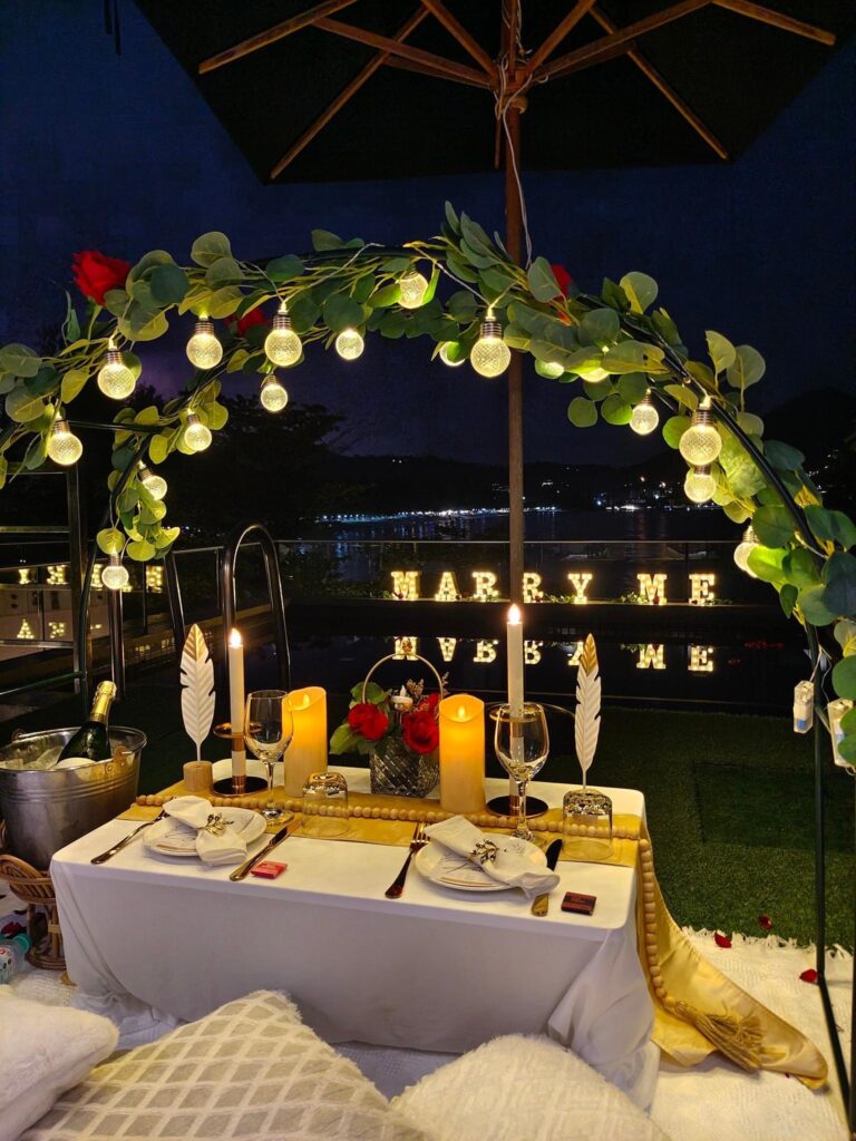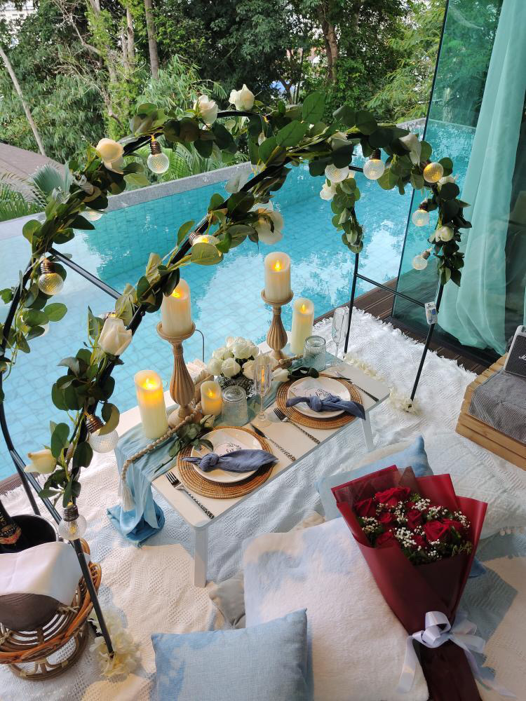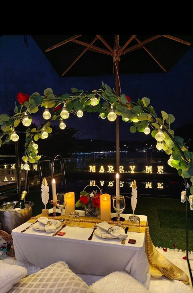 If you have a private pool we can set up a romantic proposal pool side. Propose under the stars with this very special set up.